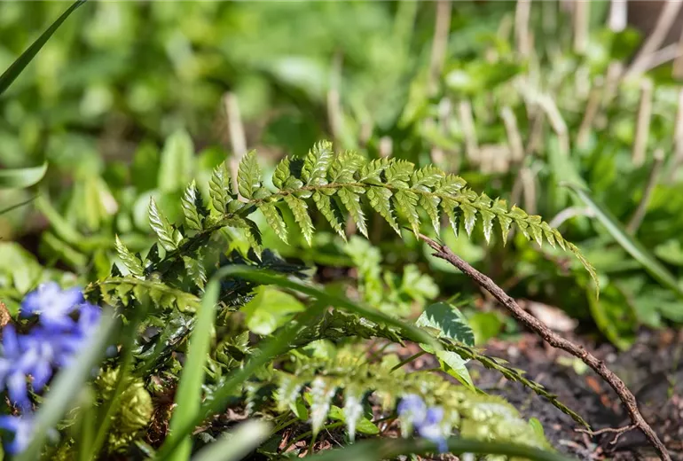 Farne sind ganz besondere Pflanzen im Garten – so viel steht fest. Sie gehören sogar zu den ältesten Pflanzen auf unserem Planeten. Schon vor mehr als 400 Millionen Jahren wuchsen sie in Wäldern und sind noch heute in unserer Braunkohle zu finden. Sie gehören zu den ersten Pflanzenarten und haben bis heute überdauert. Wer also einen langjährigen und treuen Mitbewohner im Garten sucht, der ist hier genau richtig. Die unterirdischen Rhizome sind sehr ausdauernd und können mehrere Jahre problemlos überleben. Vor allem im Frühjahr sind die Pflanzen sehr faszinierend. Denn dann zeigt sich der neue Austrieb. Dieser wird schon im Herbst gebildet und bleibt bis zum Frühjahr aufgerollt. Damit sind sie vor dem Winter geschützt und können sich im Frühjahr unbeschadet ausrollen. Das Aussehen der aufgerollten Wedel erinnert ein bisschen an Bischofsstäbe oder Geigenköpfe. So oder so sind Farne im Garten etwas ganz Besonderes. Mit ihrer satten Farbe leuchten sie im lichten Schatten umso mehr und begrünen damit Stellen, die andere Pflanzen eher meiden würden.