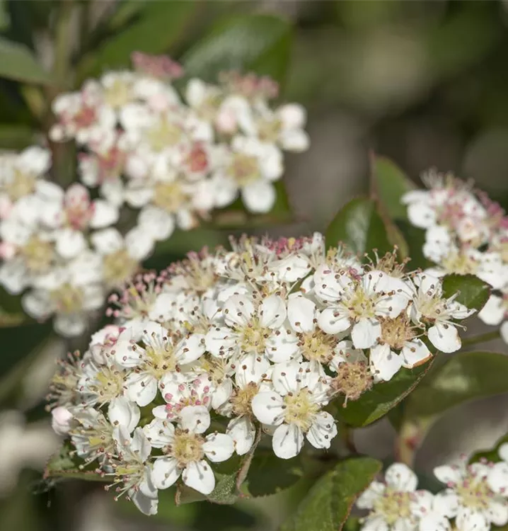 Aronia melanocarpa 'Nero' bildet in Rispen angeordnete, weiße Blüten ab Mai.